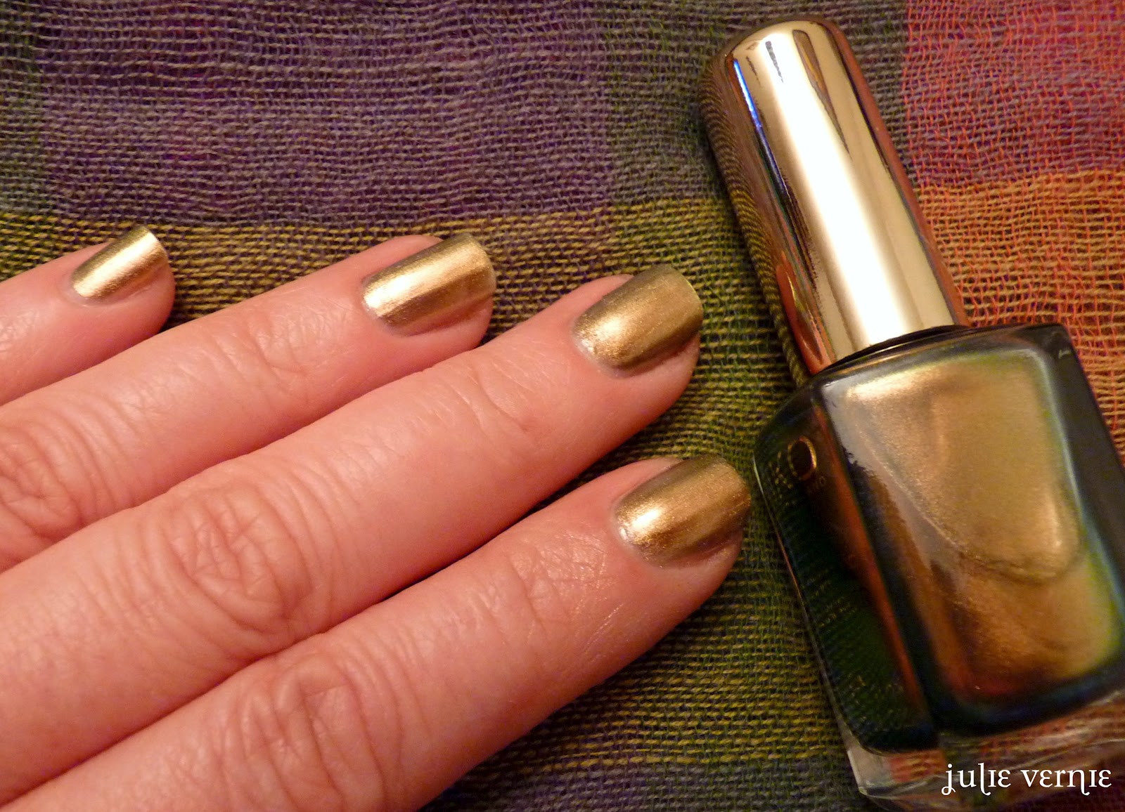 Bilan : une note salée mais plein de soleils dans mon panier pour égayer un après-midi pluvieux. Et parmi ces soleils, deux duochromes sur les quatre de la collection : le bronze et le rouge. J'ai du mal avec le bleu-vert que j'ai l'impression de voir partout ; quant au bleu foncé, je ne le vois pas tellement duochrome. Mais j'aime bien les irisations : c'est mon côté bling-bling, je l'avoue...