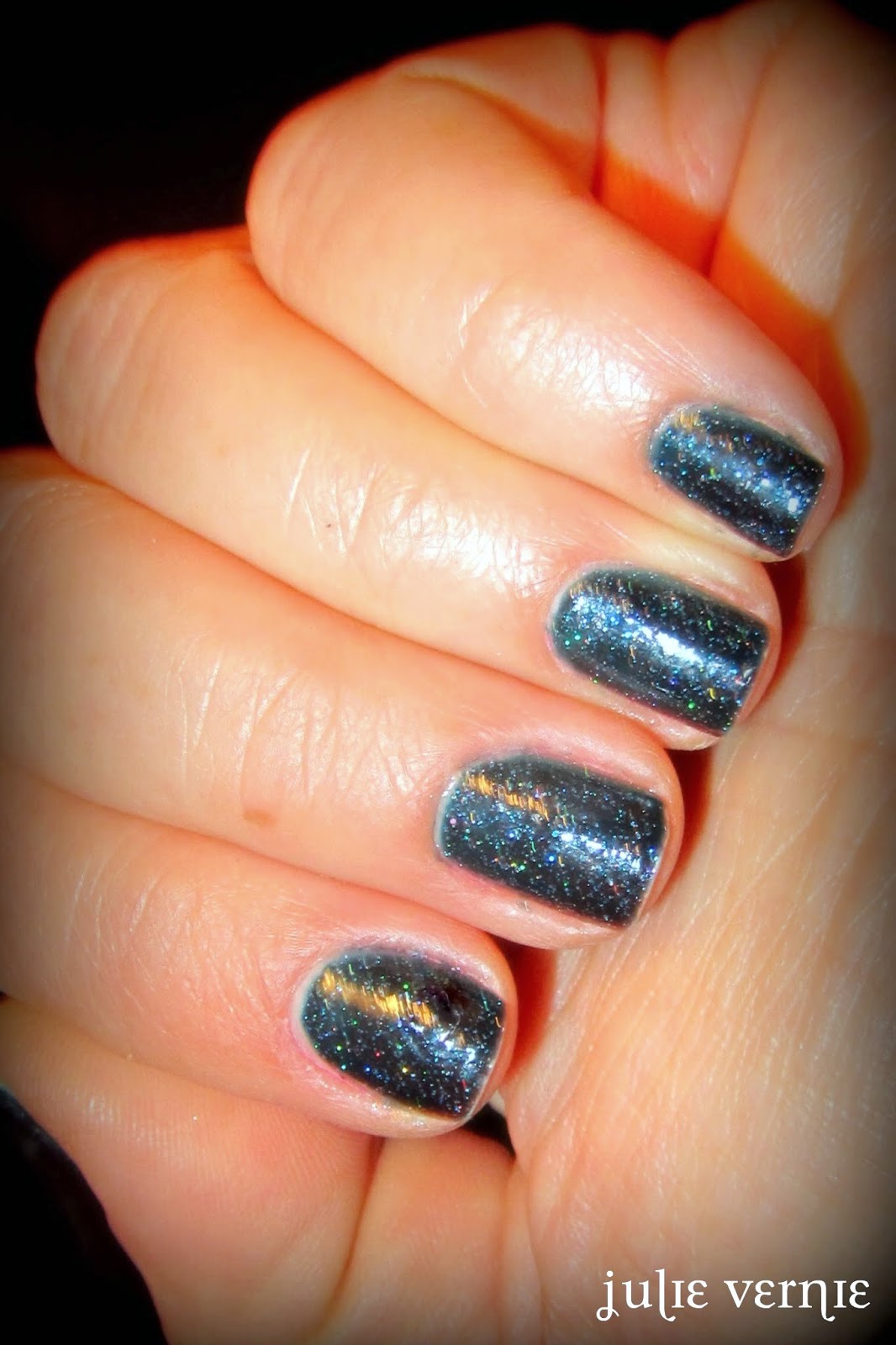 Mais j'ai assez parlé et vous voulez le voir, ce vernis, pas vrai ? Il s'appelle Splendor... et vous allez comprendre. Quiconque trouve les paillettes pas assez chic peut passer son chemin. Mais moi, j'affirme que ce vernis mérite le nom de splendeur. Je l'ai étrenné lors d'une soirée de fête, et je peux vous dire qu'il a fait son petit effet.