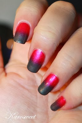 Vous avez été nombreuses à vous inquiéter de moi et je suis désolée de vous avoir laissées aussi longtemps sans nouvelles. Mais il y a eu pas mal de bouleversements dans ma vie : je n'entrerai pas dans le détail, mais je vais sûrement bloguer moins. Je vous rassure toutefois : ma santé n'est pas en cause. Sachez que vous êtes des filles géniales et que je ne renie pas un mot, pas un millimètre carré d'ongle (verni, bien sûr) de tout ce qu'il y a sur ce blog. Je ne m'attendais pas à ce changement soudain, je n'ai rien vu venir, mais il s'avère que je n'ai plus vraiment le temps... C'est dommage, car vos manucures avec la deuxième association de couleurs sont toutes superbes ! Les voici :