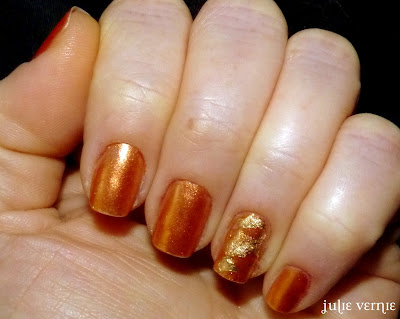 Je m'en suis servi pour transformer un vernis au sujet duquel je me demande pourquoi je l'ai acheté : Mavala Khaki Vintage.C'était à l'époque où j'étais encore un bébé vernis addict qui craquait sur les Mavala dans les pharmacies ou à Monoprix, et j'ai dû avoir la curiosité d'essayer un vert amande. Alors autant ne pas prendre de risque et acheter un petit flacon, pas vrai ? Mvoui... mais je ne l'ai pas trouvé renversant sur mes ongles.