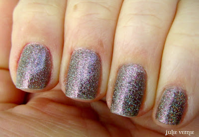 Et puis, il y a eu l'holographie. Et la révélation : certains holos peuvent servir de topcoat à effets, comme par exemple le gris de Catherine Arley ou le Hits Hefesto ! Et ça change tout...
