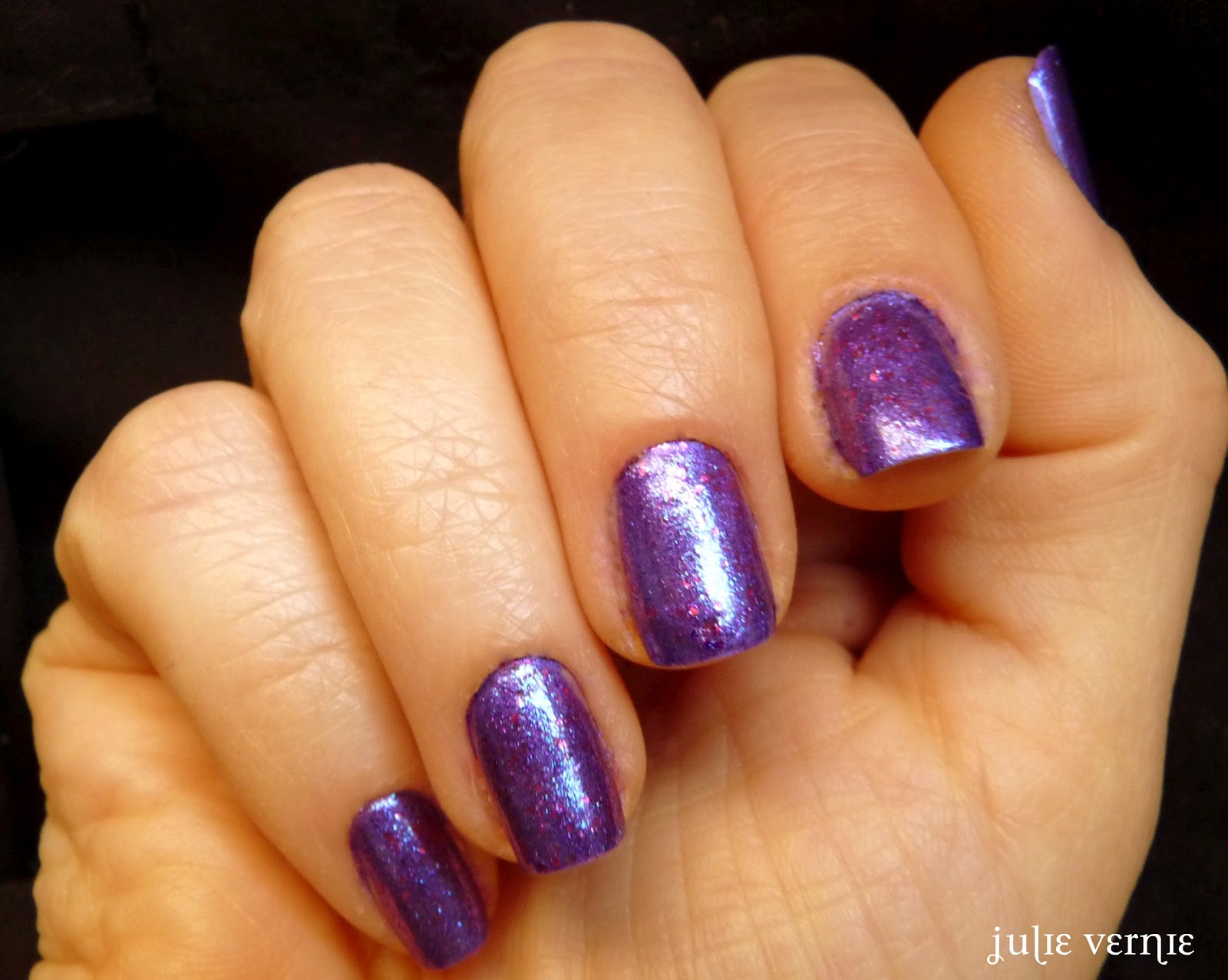 • Reflets : glitter duochrome, bleu sur gel fuschia, fini métallique ou miroir comme beaucoup de vernis de cette ligne... bref, si on aime le rose et le violet, à succomber