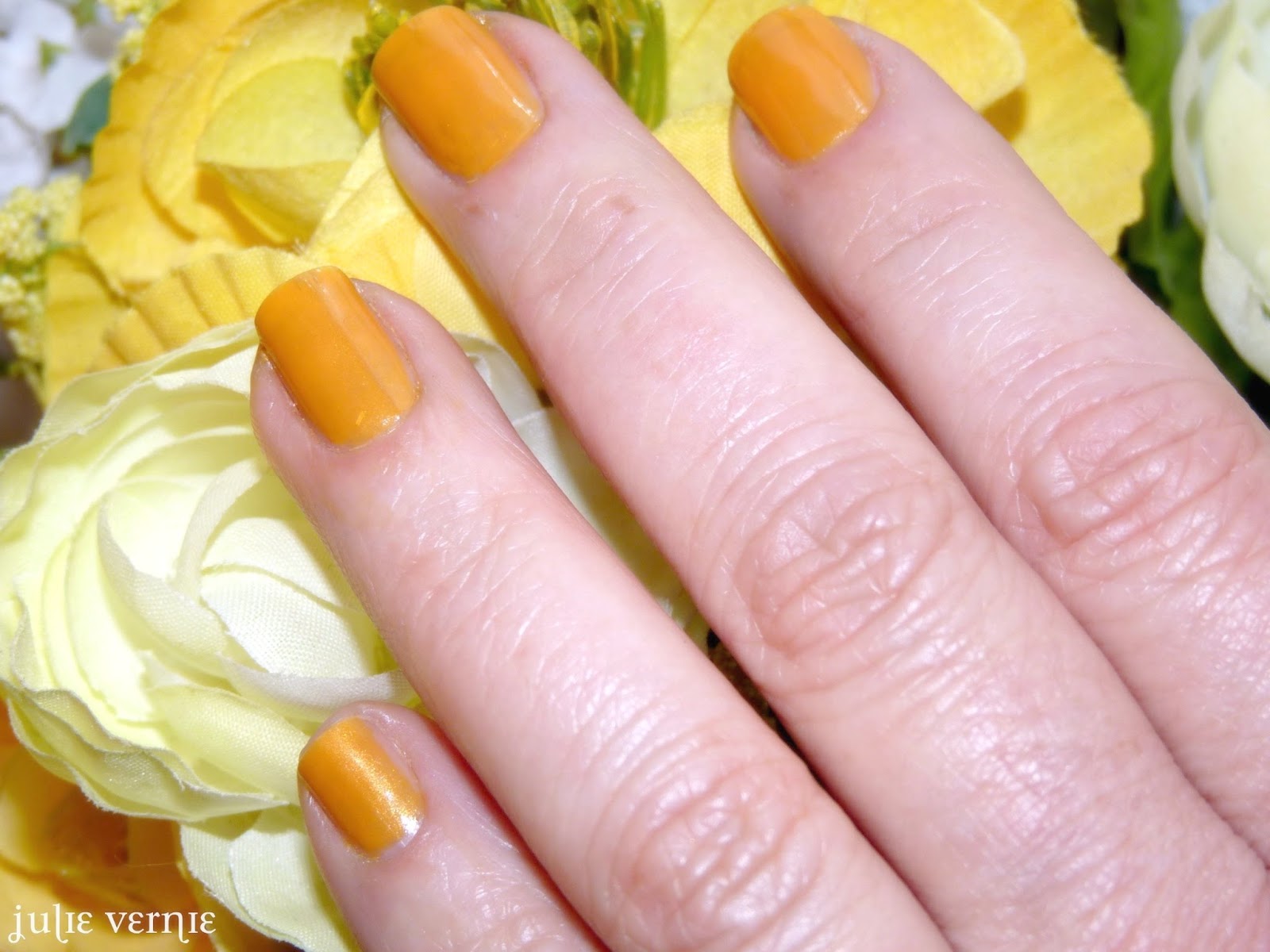Dès avant le défi du jaune, j'aurais eu envie d'essayer cette couleur car elle est suffisamment foncée et tire beaucoup sur l'orangé. Tant que ce n'est pas du jaune primaire ou du jaune pastel, je suis prête à tenter le coup. Mais je me demande si j'aurais acheté ce même vernis il y a quelques mois, avant d'assumer mon addiction au vernis :-). Désormais, je cède à la tentation.