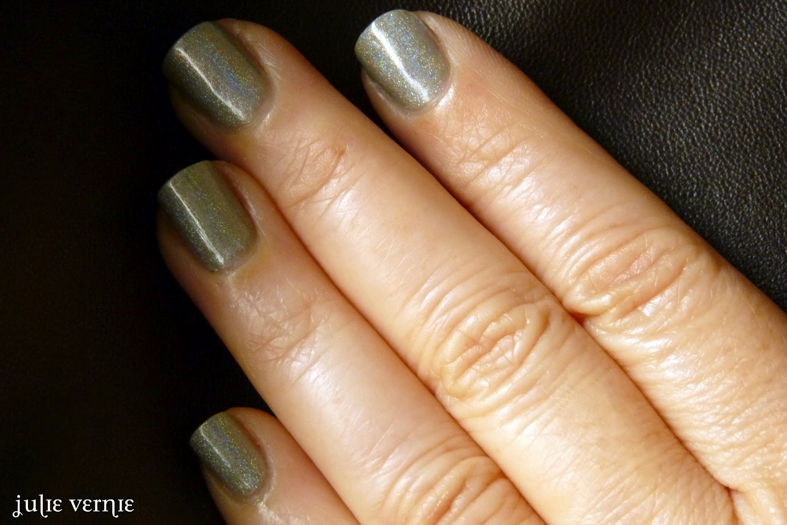 Et puis, il y a eu l'holographie. Et la révélation : certains holos peuvent servir de topcoat à effets, comme par exemple le gris de Catherine Arley ou le Hits Hefesto ! Et ça change tout...