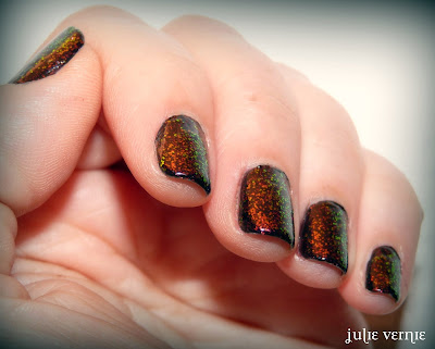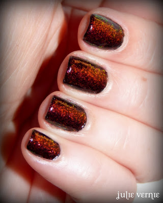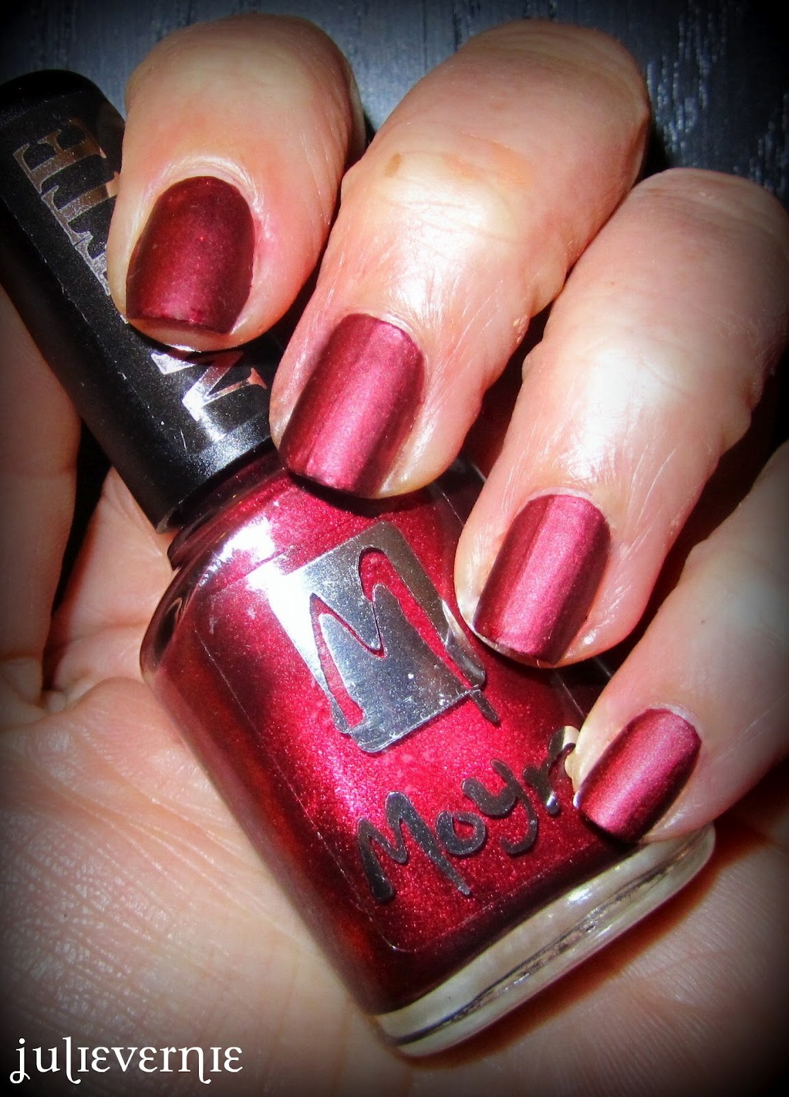 C'est le Moyra 404, un mat... mais attention, un mat métallique. C'est de la magie. C'est comme si une NPA avait vu ce qu'il y avait à tirer de la couleur en la matifiant et qu'elle avait tout préparé dans le flacon. Pourquoi il n'est pas dans la série des Suede, je me le demande. Peut-être le fini est-il plus velouté, moins granuleux qu'un Suede.