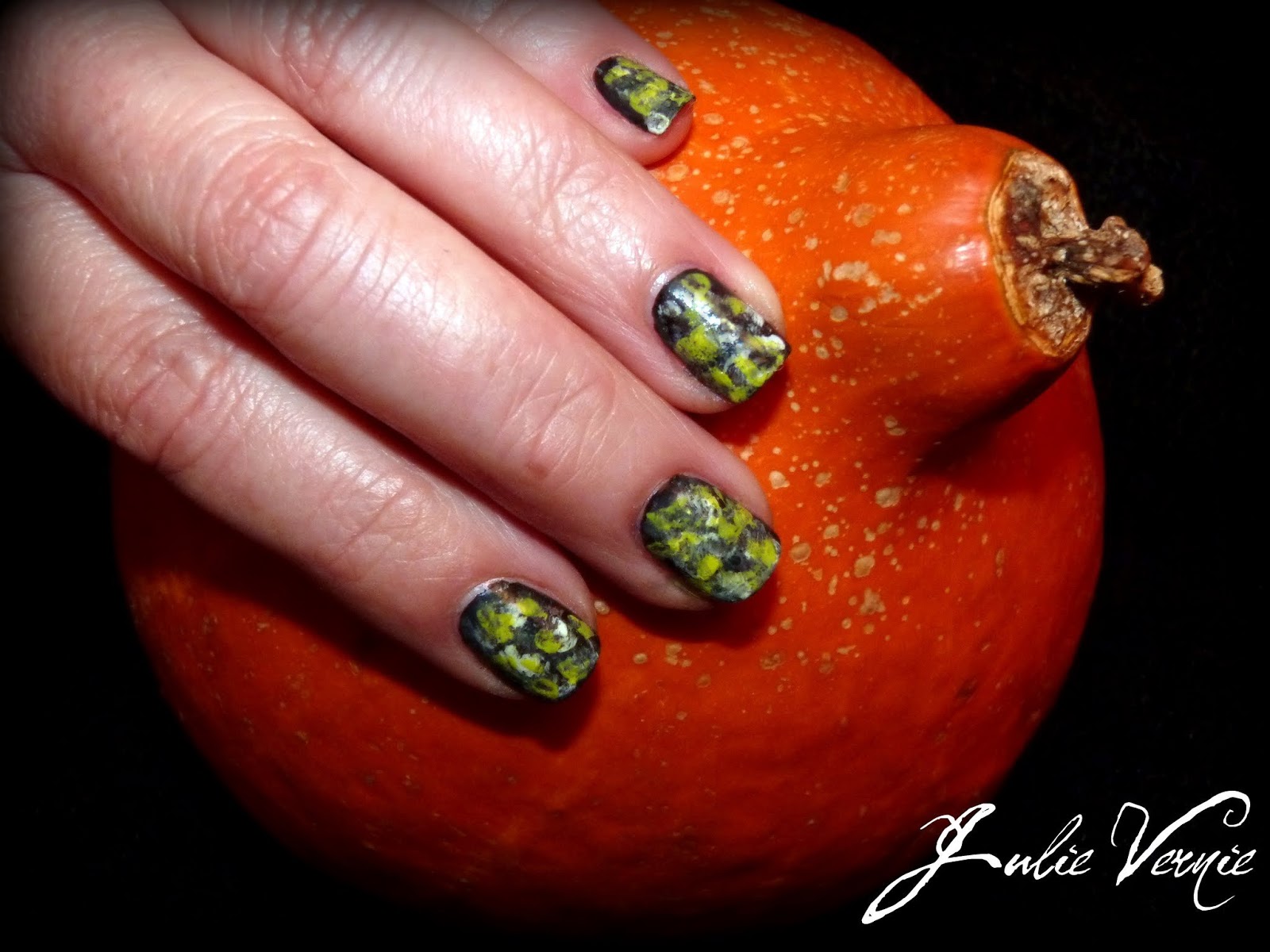 1. En tout cas tes ongles ne donnent pas envie de s'y frotter, un peu comme un dos de crapaud ... Beurk, défi réussi !
