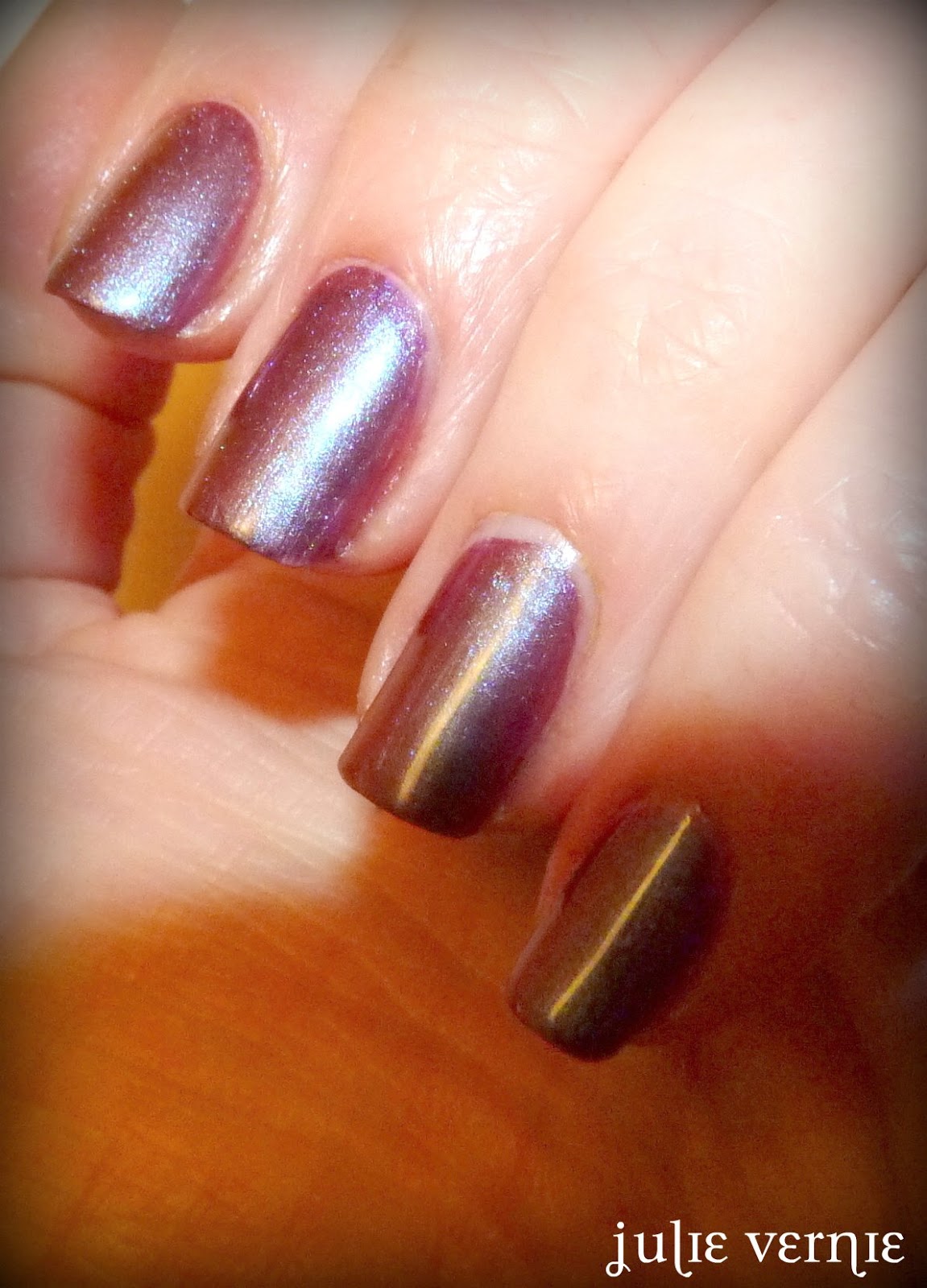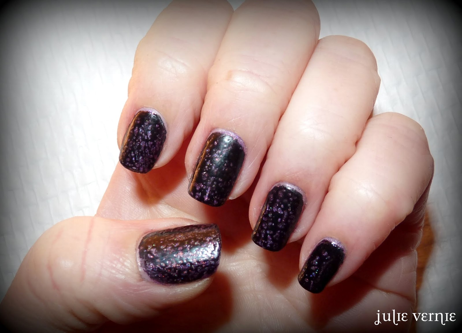 Tout ceci pour vous dire qu'après avoir porté ce prune holographique, j'ai prolongé son existence avec le Spotted, mais j'aimais aussi ma manucure au naturel. Prunes hypnotiques au naturel... Et pendant que je l'ai porté, je n'ai pas été fichue d'en faire une photo à la lumière du jour. Dommage.