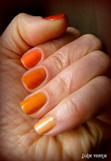 Tiens, ça fait longtemps que je n'ai pas fait de dégradé, dans quelque sens que ce soit ! Mandarin Girl est sur l'annulaire |